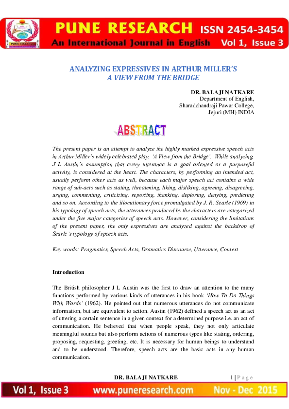 Pdf Analyzing Expressives In Arthur Miller S A View From The Bridge Balaji G Natkare Academia Edu